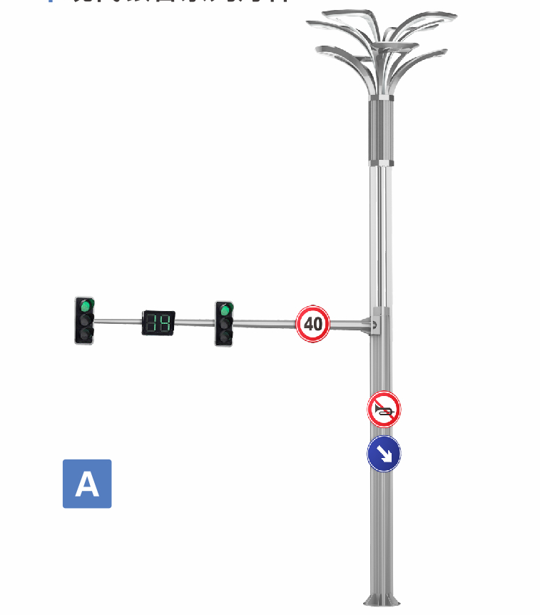 多功能綜合桿是集多種功能于一體的公共基礎設施,其常見配置選項豐富多樣?。具體來說,常見的配置選項包括: ?智能照明設備?:如LED燈具,可根據需要調整照明亮度,提高夜間行車和行人安全。 ?監控攝像設備?:如高清攝像頭,用于監控交通和治安情況,為城市管理提供數據支持。 ?交通信號設備?:如交通信號燈,用于引導交通和行人通行。
