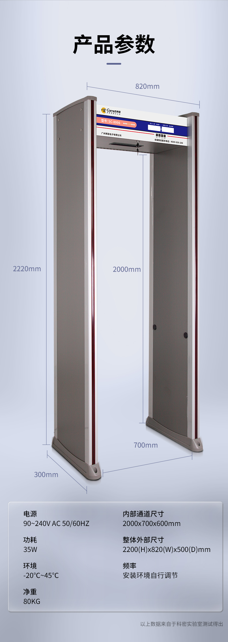 科密安檢門金屬探測門六區檢測工廠防盜手機車站學校公檢法SC-8006