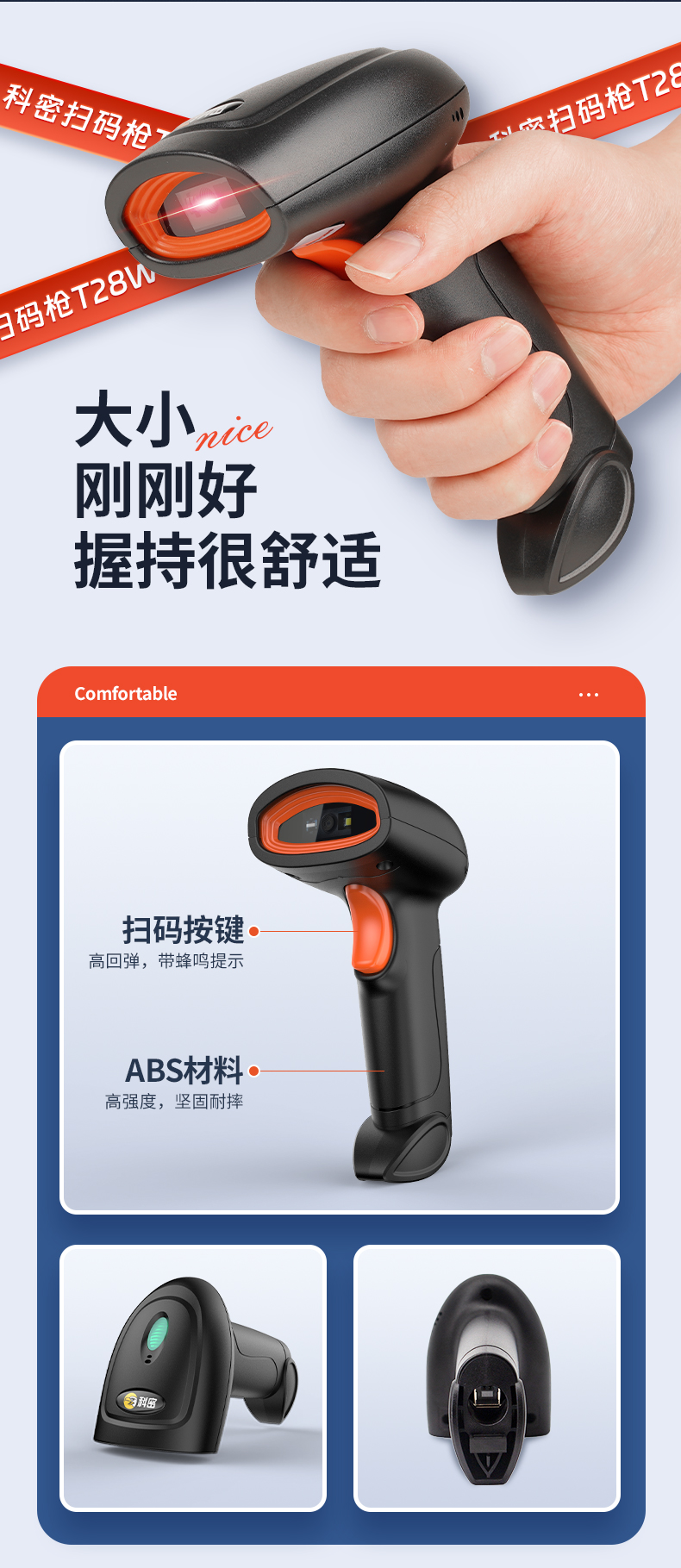 科密T28W無(wú)線(xiàn)掃碼槍條碼掃描器超市手機(jī)支付寶微信收銀二維碼掃描槍快遞物流倉(cāng)儲(chǔ)把槍有線(xiàn)醫(yī)保電子憑證掃碼器
